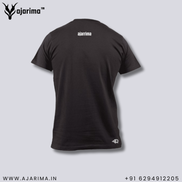 Material: Made from cotton or a cotton blend fabric, the t-shirt is soft, breathable, and comfortable to wear. Color: The shirt is uniformly dyed black, providing a sleek and versatile appearance. Design: It may feature various design elements such as a crew neckline, short sleeves, and a straight or slightly tapered fit. Some shirts may have additional details like ribbed cuffs, a chest pocket, or a graphic print. Style: Black t-shirts are versatile and can be styled in numerous ways, from casual to more formal occasions, depending on the design and accompanying clothing items. Size: Available in various sizes to accommodate different body types and preferences. Durability: Constructed with quality stitching and fabric, ensuring durability and longevity with proper care. Versatility: Suitable for a wide range of activities and settings, including casual outings, exercising, layering under jackets or sweaters, or as part of a uniform or work attire. Overall, a black t-shirt is a staple wardrobe item due to its timeless appeal, versatility, and ease of pairing with different clothing pieces.