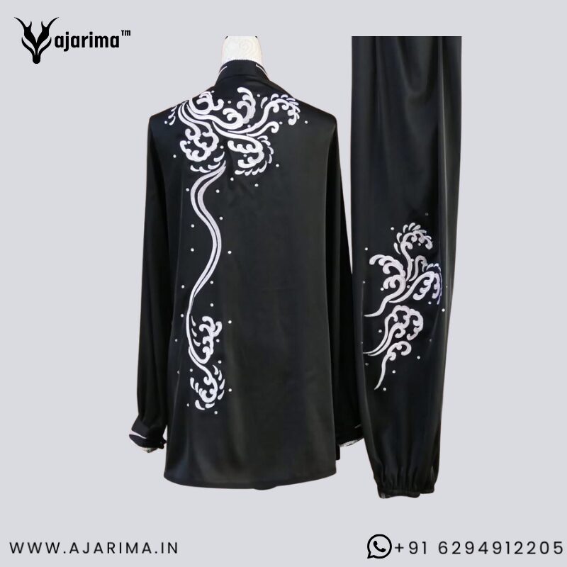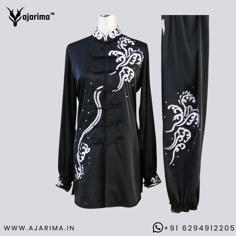 The classic black colour combined with elegant traditional embroidery creates a powerful yet graceful appearance, suitable for stage performance and formal Taichi events. Expert stitching ensures durability and a comfortable fit for long-term use.