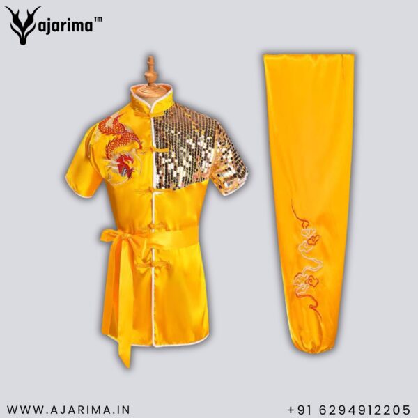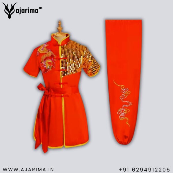 Intricately embroidered with traditional motifs — such as dragons, phoenixes, or cloud patterns — the outfit symbolizes strength, agility, and heritage. The vibrant color palette and shimmering threads ensure you’re seen on every stage, whether in competition, demonstration, or practice.