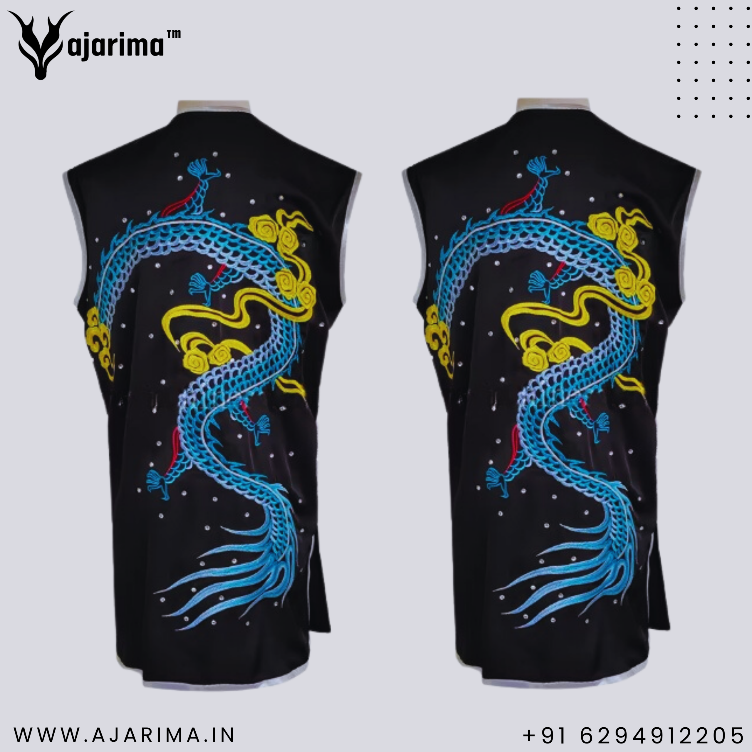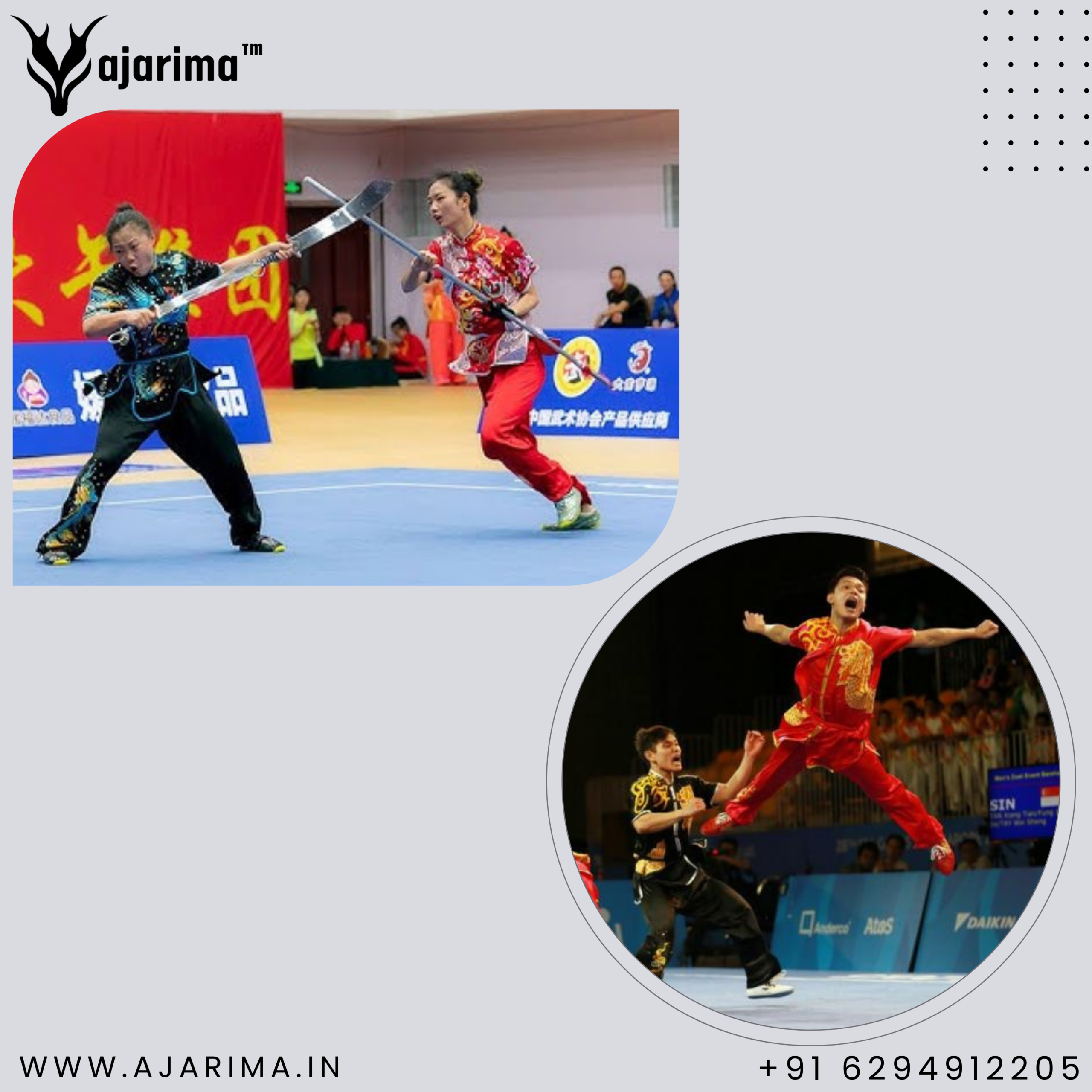 Overall, the uniform is designed to facilitate movement while reflecting the rich cultural heritage of wushu, emphasizing both functionality and aesthetic elegance.