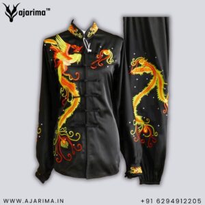 Crafted from smooth, lightweight silk or satin, this vibrant red Wushu uniform offers excellent flexibility, breathability, and comfort—ideal for both performance and practice. The design features a traditional Mandarin-style jacket with frog button closures and wide sleeves, paired with loose-fitting pants for unrestricted movement.