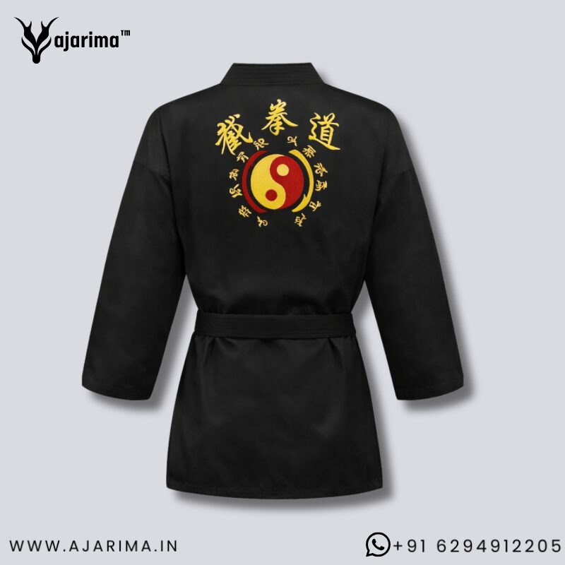 Premium quality black Jeet Kune Do uniform designed for serious martial artists. Suitable for both men and women, this training dress offers comfort, durability, and a professional appearance for practice, seminars, and demonstrations.