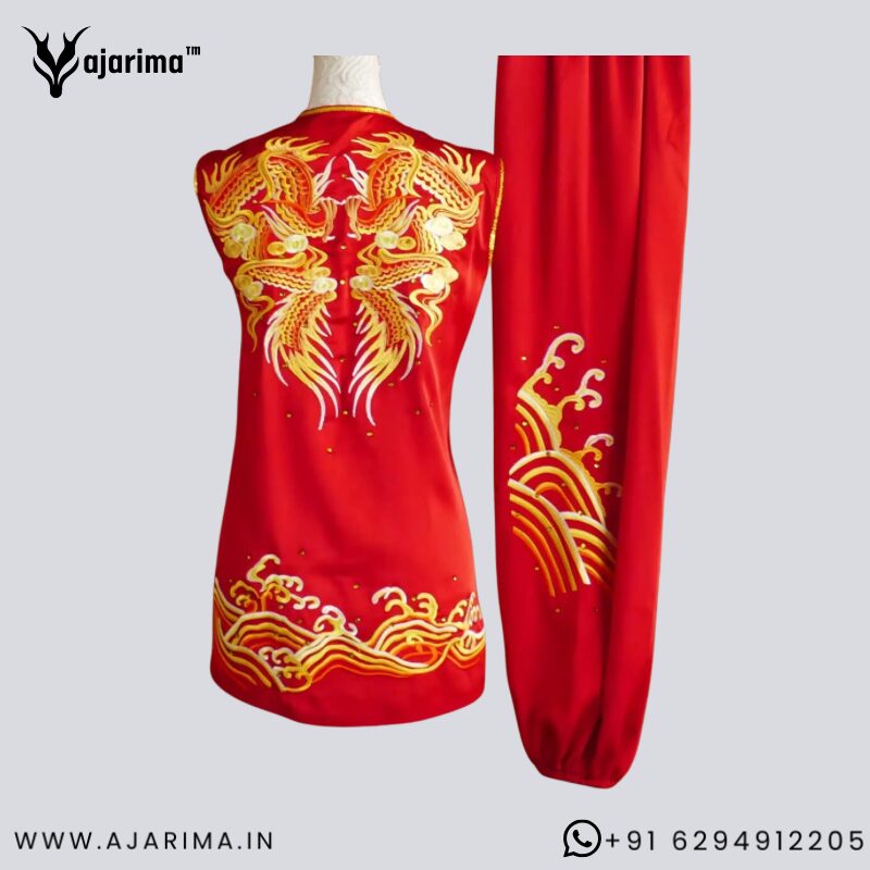 The dress is crafted with premium-quality fabric to support strong stances, explosive movements, speed, and flexibility, which are essential in Nanquan Taolu. The bold traditional design enhances stage presence and confidence during competition.