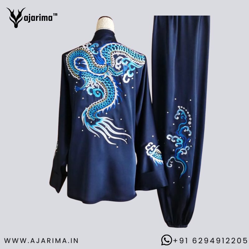 Experience power, elegance, and tradition with this Premium Blue Dragon Tai Chi Wushu Dress, specially designed for men and women in India. Made from high-quality satin-finish fabric, this professional Wushu Taolu uniform offers smooth movement, breathability, and long-lasting comfort for practice and competition.