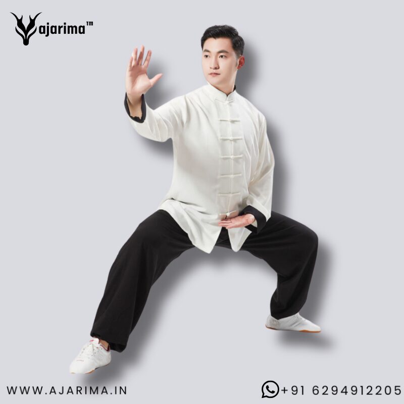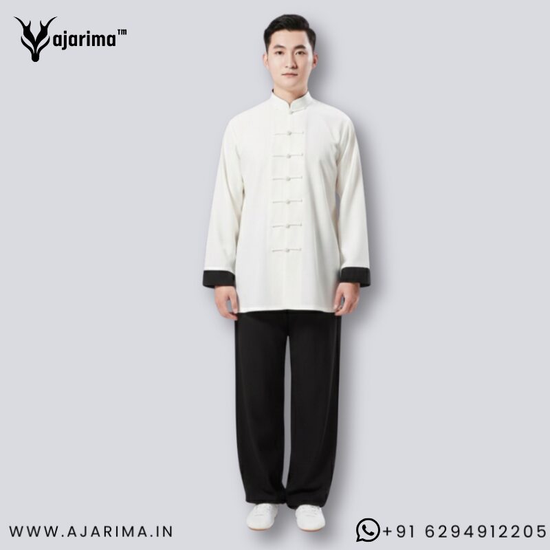 Professional martial arts uniform designed for Taichi, Kung Fu, and Wing Chun practitioners. This classic black and white combo dress offers a traditional look with modern comfort, making it perfect for training, workshops, demonstrations, and competitions.