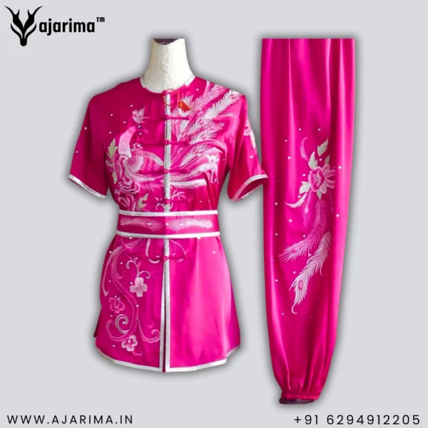 Embrace the perfect fusion of tradition, elegance, and athletic performance with our Women’s Wushu Taolu Nanquan Costume with Intricate Peacock and Floral Embroidery. This professionally designed uniform is tailored specifically for female martial artists who want to perform with confidence, fluidity, and style.