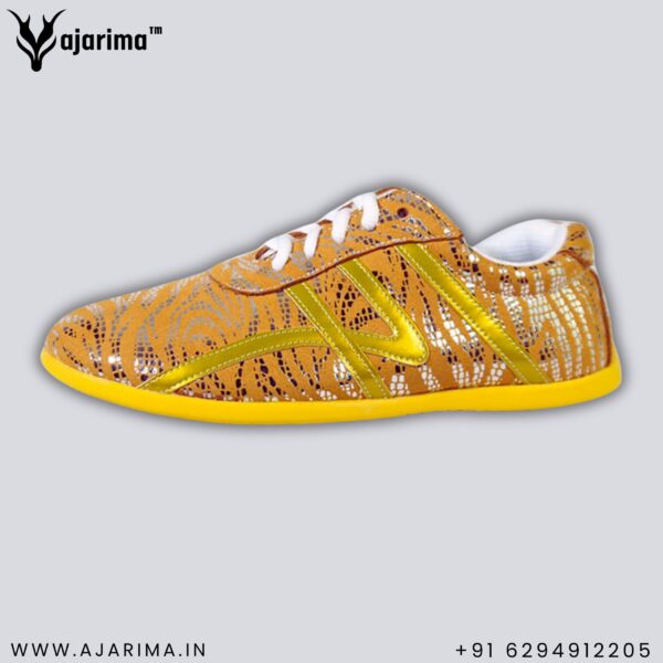 At “Ajarima Sports World”, we are dedicated to providing high-quality martial arts footwear that meets the needs of serious practitioners. Our Wushu Taolu Shoes with Glitter are meticulously designed to offer exceptional performance, comfort, and style. Elevate your practice and performances with our premium glittery Taolu shoes.