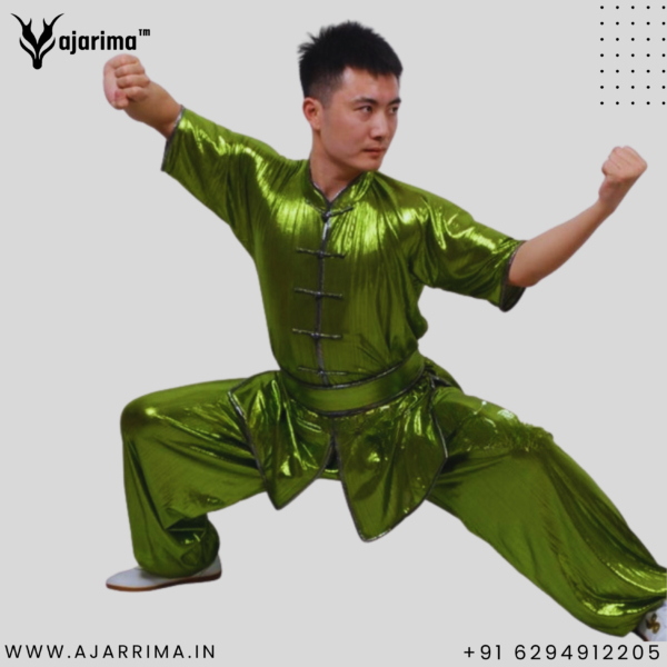 Overall, the uniform reflects the rich cultural heritage of Wushu while prioritizing the athlete’s comfort and mobility.