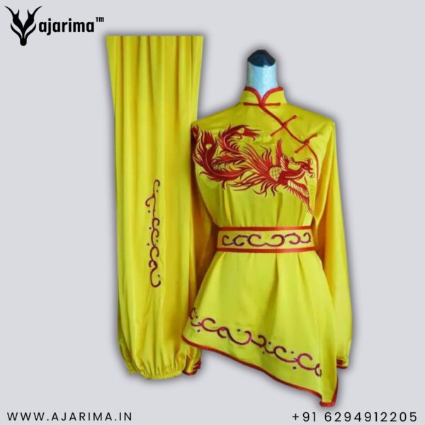 Wushu Yellow Uniform with Phoenix Embroidery: Elegance and Strength in Motion