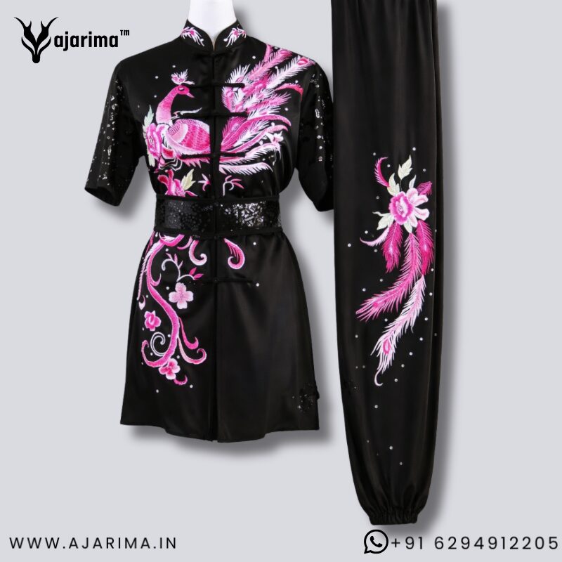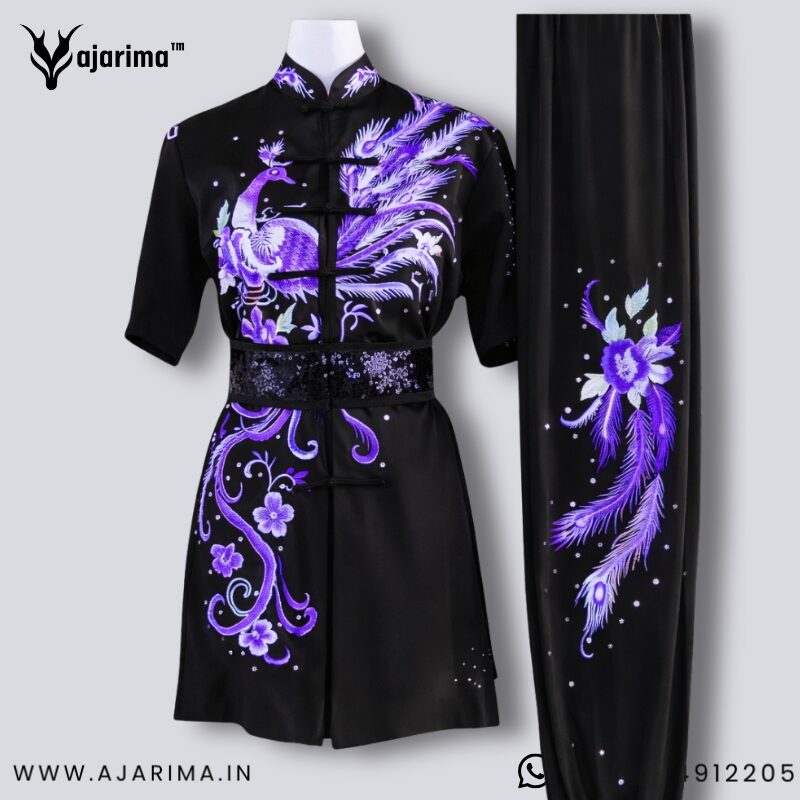 A Wushu Taolu Changquan competition uniform is typically designed for both functionality and aesthetics, emphasizing the martial art’s fluid movements and cultural heritage. Here are the key features: