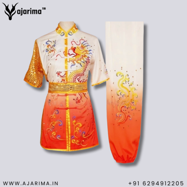 The Changquan competition uniform is crafted to combine practicality with striking visual elements. Its design ensures that practitioners can perform complex movements effectively while maintaining a traditional and impressive appearance on stage.