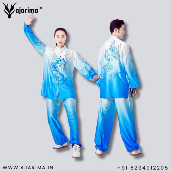 Overall, the uniform embodies grace and tradition, aligning with the philosophy of Tai Chi.