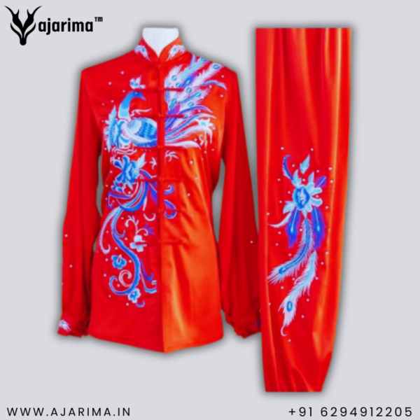 - Embroidery/Design: Red uniforms are often accented with intricate embroidery, which may include traditional Chinese symbols like dragons, phoenixes, or floral designs. These are typically embroidered in contrasting colors, such as gold, yellow, or white, to make them stand out against the red backdrop.