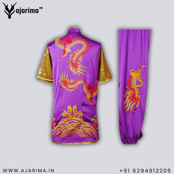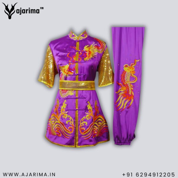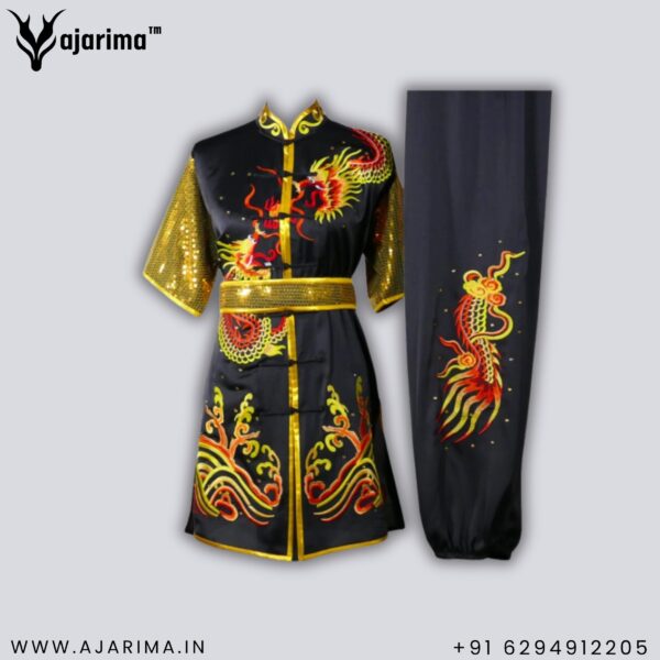 Whether worn in high-level competitions, demonstrations, or ceremonial events, this uniform not only enhances the visual impact of each movement but also pays homage to the rich cultural heritage of Wushu.