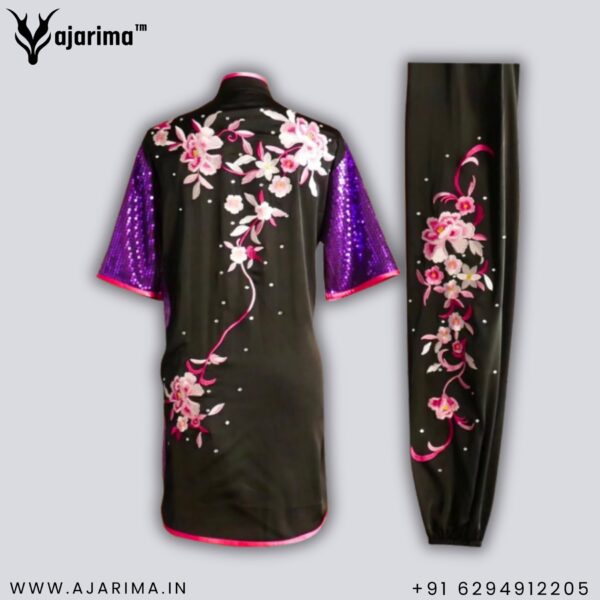 Wushu Uniform with Flower Embroidery & Fabric Work
