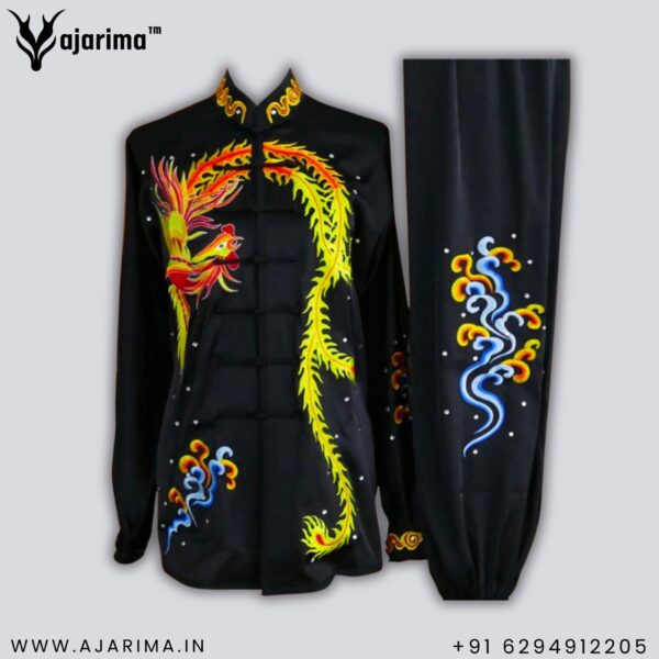 Wushu Uniform with Phoenix, Cloud & Water Embroidery